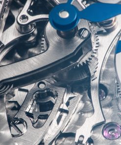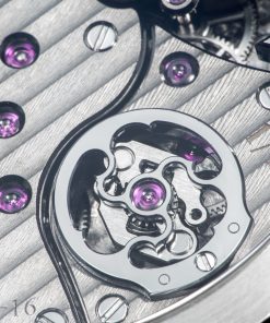 The watch’s in-house calibre SMAHH-02 is a manual movement requiring about a month to assemble its 536 components. It embodies Speake Marin’s dedication to precision, with the chiming rhythm set to an ideal 18 seconds for 12H59 to ensure dynamic resonance. The minute repeater’s sound quality is further refined through the use of sapphire in its three hammers, taking advantage of sapphire’s hardness to create optimal tones for the hours, quarters, and minute signals.