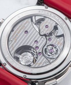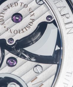 The watch’s in-house calibre SMAHH-02 is a manual movement requiring about a month to assemble its 536 components. It embodies Speake Marin’s dedication to precision, with the chiming rhythm set to an ideal 18 seconds for 12H59 to ensure dynamic resonance. The minute repeater’s sound quality is further refined through the use of sapphire in its three hammers, taking advantage of sapphire’s hardness to create optimal tones for the hours, quarters, and minute signals.