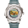 An alliance of two highly sought-after Grand Complications, Reference 5374 comes in an Haute Joaillerie platinum version in platinum with a lacquered blue dial. The dial flange set with baguette-cut diamonds and blue sapphires creates a spectacular depth effect. The self-winding movement features a perpetual calendar and a cathedral minute-repeater.