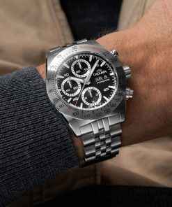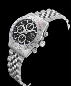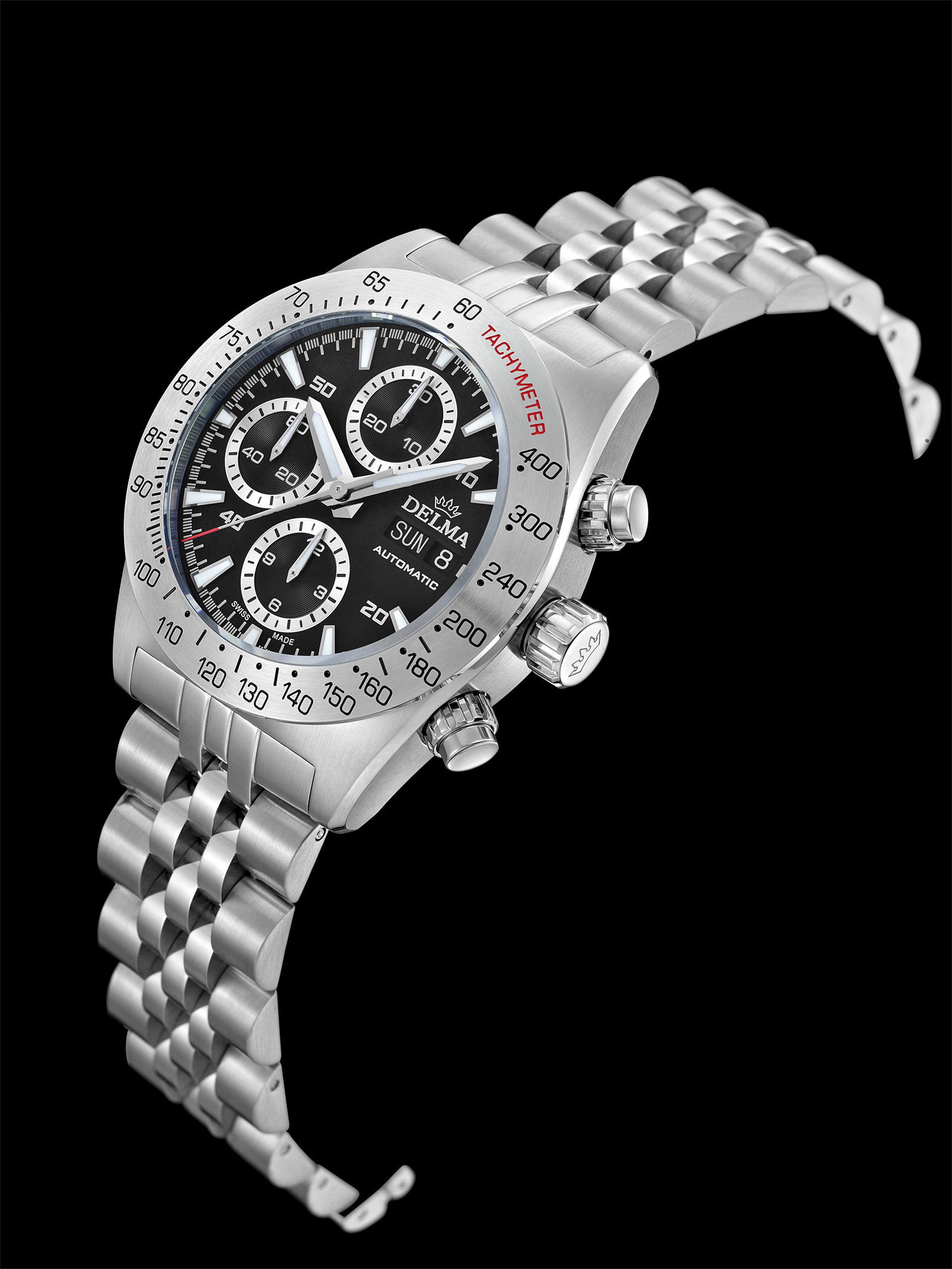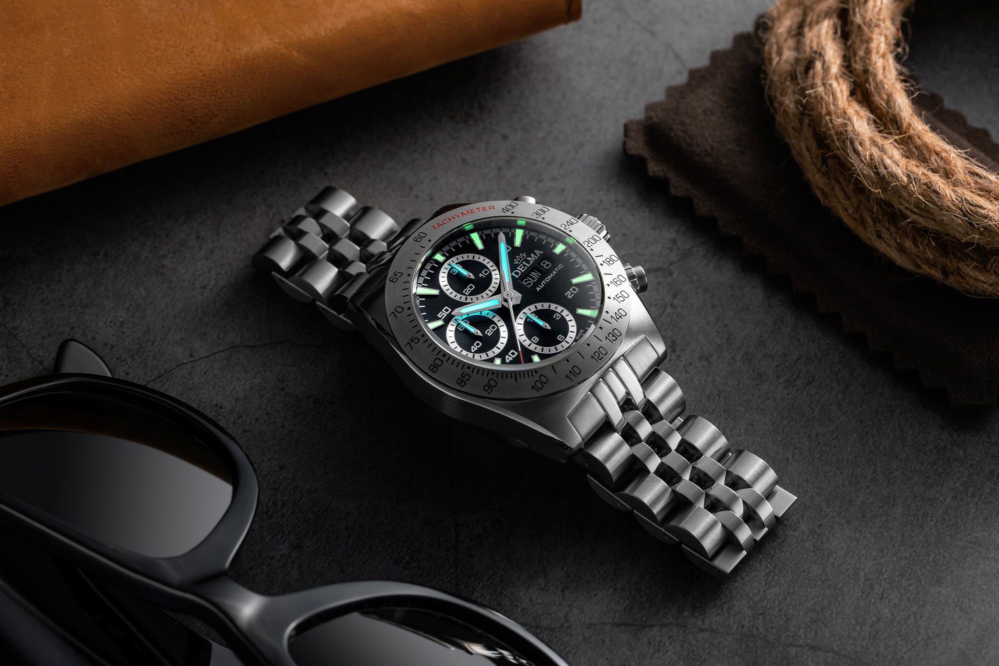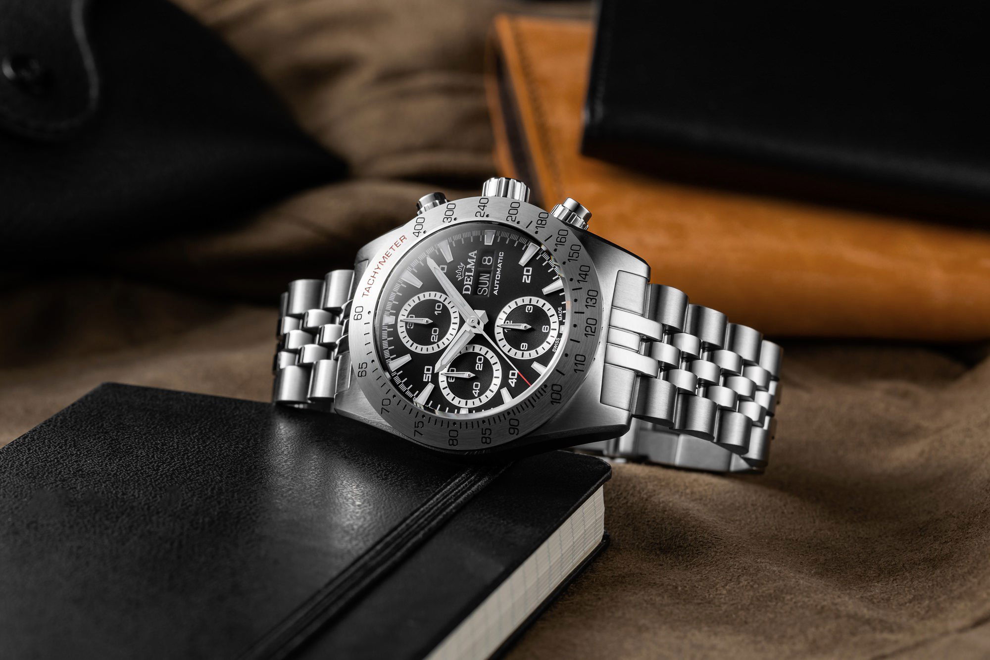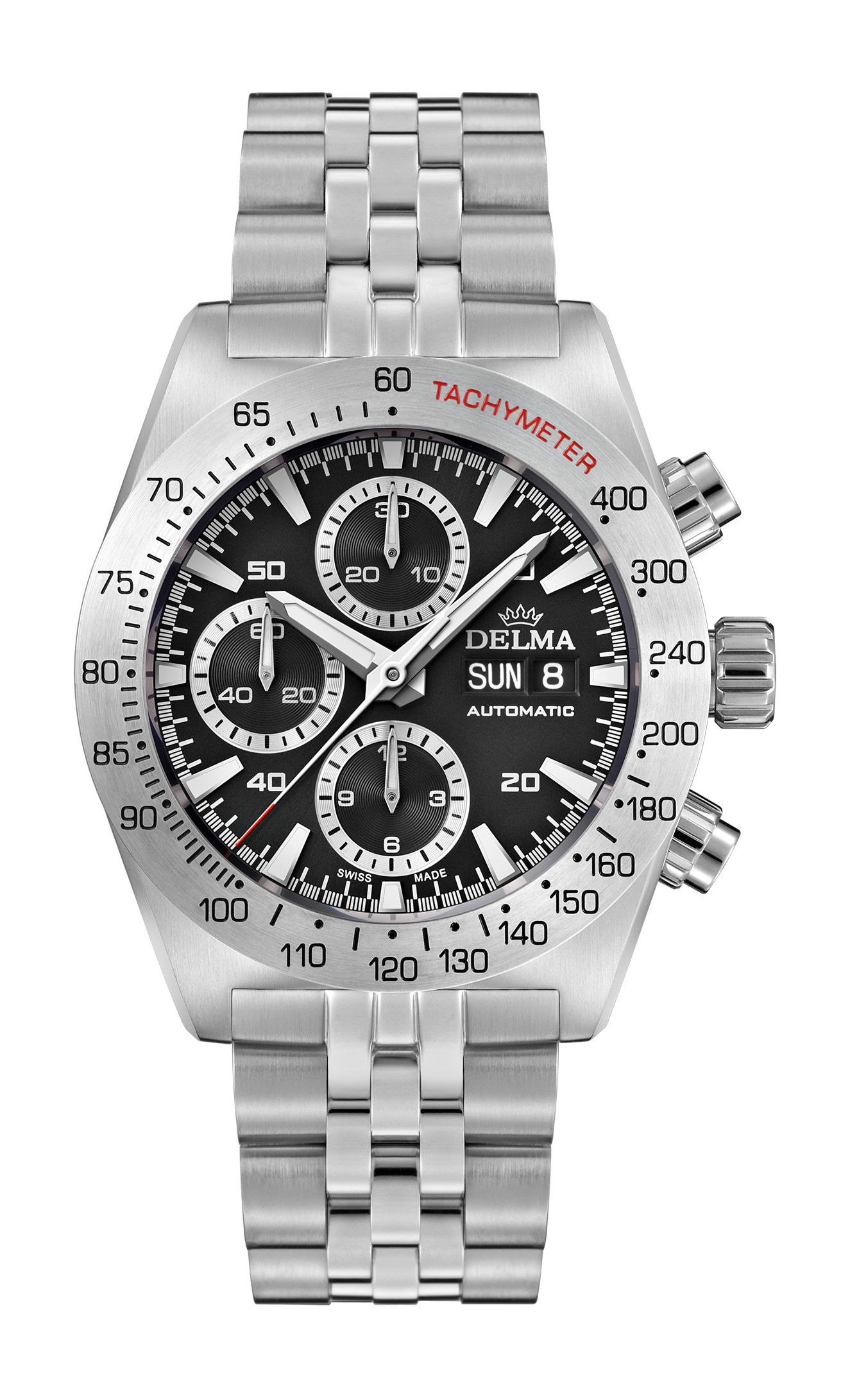 Motorsport influences run through the design, from the sunray brushed dial to the intricately patterned guilloche sub-dials. Bold hour and minute hands, paired with a vivid red seconds hand, glide over the dial with clarity and purpose. A neatly integrated day-date window sits beneath the DELMA emblem, adding a subtle touch of sophistication. Whether you’re on the track, off-road, or simply navigating daily life, the Montego delivers both function and flair.