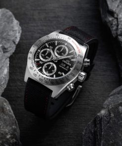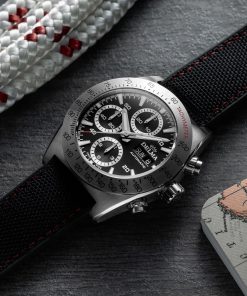Motorsport influences run through the design, from the sunray brushed dial to the intricately patterned guilloche sub-dials. Bold hour and minute hands, paired with a vivid red seconds hand, glide over the dial with clarity and purpose. A neatly integrated day-date window sits beneath the DELMA emblem, adding a subtle touch of sophistication. Whether you’re on the track, off-road, or simply navigating daily life, the Montego delivers both function and flair.