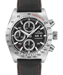 Motorsport influences run through the design, from the sunray brushed dial to the intricately patterned guilloche sub-dials. Bold hour and minute hands, paired with a vivid red seconds hand, glide over the dial with clarity and purpose. A neatly integrated day-date window sits beneath the DELMA emblem, adding a subtle touch of sophistication. Whether you’re on the track, off-road, or simply navigating daily life, the Montego delivers both function and flair.
