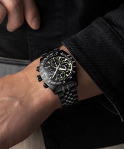 At its core is the Swiss-made SW500 automatic movement, delivering 62 hours of power and a proven track record in precision and reliability. A screw-down crown and 200 meters of water resistance back up the Montego’s tool-watch credentials, while the exhibition case back offers a glimpse at the Côtes de Genève-finished rotor. The black DLC-coated five-link bracelet continues the watch’s all-black design and gives it a secure, comfortable fit on the wrist.