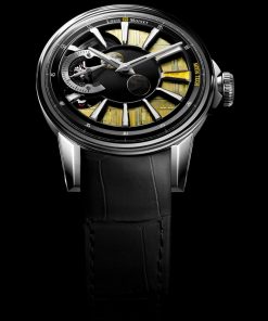 The Louis Moinet MOON TECH is an extraordinary watch limited to just eleven pieces, featuring a unique display of the lunar cycle. It showcases the full moon and new moon with lunar meteorites on a central disc, with a golden circle indicating the full moon’s position. The mechanism behind this complication is highly precise, deviating only one day in 122 years. Developed in collaboration with Concepto, the exclusive automatic calibre bears the signature of independent watchmaker LOUIS MOINET.