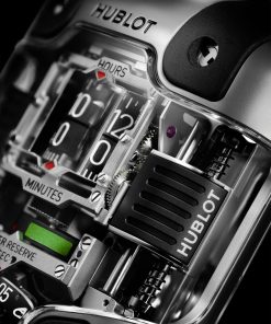 The Hublot MP-10 Tourbillon Weight Energy System is a revolutionary watch that redefines the fundamentals of traditional watchmaking. This latest offering from Hublot’s Manufacture Piece collections stands out with its absence of a conventional dial, hands, and oscillating weight, replaced instead by a roller display, a circular power reserve, and an inclined tourbillon, all uniquely powered by two linear weights. Limited to just 50 pieces, this watch is a testament to both mechanical ingenuity and aesthetic sophistication.