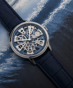 What brings it all together is the color and finishing. The blue PVD treatment adds richness to the main plate, while the steel components—finished in palladium—catch the light with a cool, clean shine. The mix of brushed and polished surfaces brings out the details without overwhelming the eye. Whether it’s paired with a blue alligator strap, a rubber band, or a steel bracelet, the Nebula 40 Steel Blue Edition feels balanced, refined, and quietly confident.