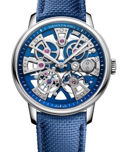 The Nebula 40 Steel Blue Edition by Arnold & Son is a skeleton watch that immediately draws the eye with its star-shaped structure and rich blue tones. The seven bridges radiate outwards in perfect symmetry, giving the watch its name and distinct character. This design isn’t just for show, it supports the entire movement, creating a sense of depth and order that feels both technical and artistic. Building on earlier versions in black and gold, this blue edition adds a fresh, modern edge while keeping the elegance that defines the Nebula line.