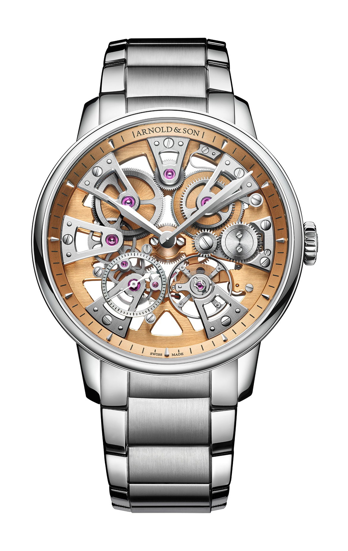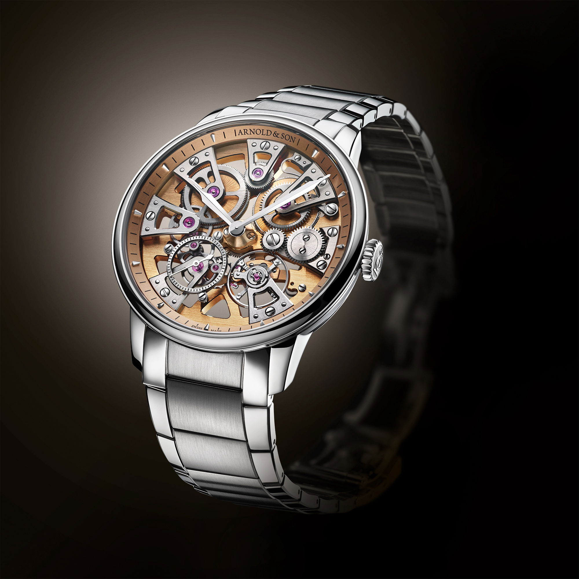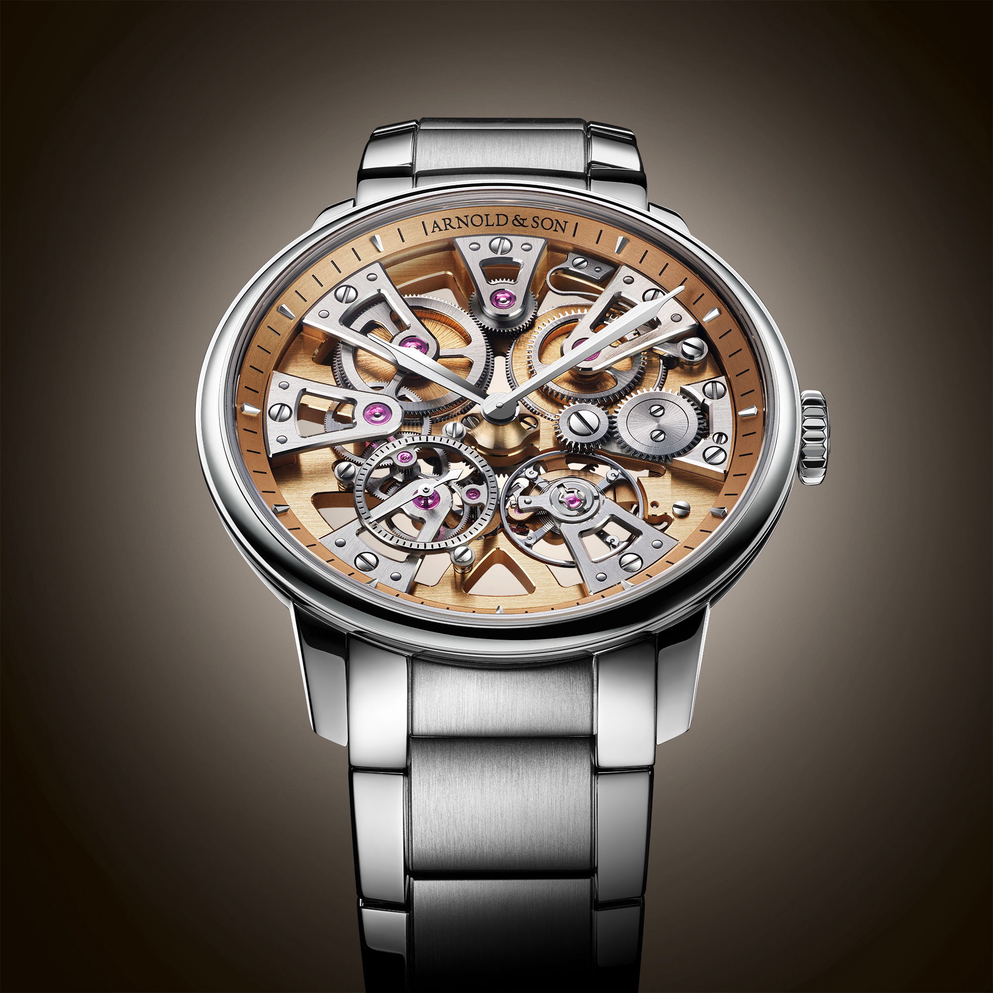 The Arnold & Son Nebula collection has been reimagined with a striking new 40 mm steel case. The collection’s skeletonized A&S5201 caliber, with its seven radiating bridges, continues to express a harmony of order and transparency inspired by celestial nebulae.