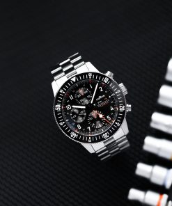 Powered by the space-endorsed Fortis Werk 17, the Novonaut goes beyond mere timekeeping. It’s a formidable machine designed with a 60-hour power capability, showcasing its mechanical prowess as a column-wheel chronograph dedicated to mastering the universe.