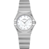 This 25 mm 18K Sedna™ gold and stainless steel model features a bezel engraved with Roman numerals, crystal white silvery dial and scratch-resistant saphire crystal. The hands, OMEGA logo, Constellation star and indexes are also in 18K Sedna™ gold.