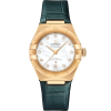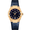 This 29 mm 18K Sedna™ gold model features a bezel with engraved Roman numerals, blue aventurine glass dial with diamond hour markers and a date window at the 6 o’clock position. The hands, OMEGA logo, Constellation star and diamond holders are also in 18K Sedna™ gold.