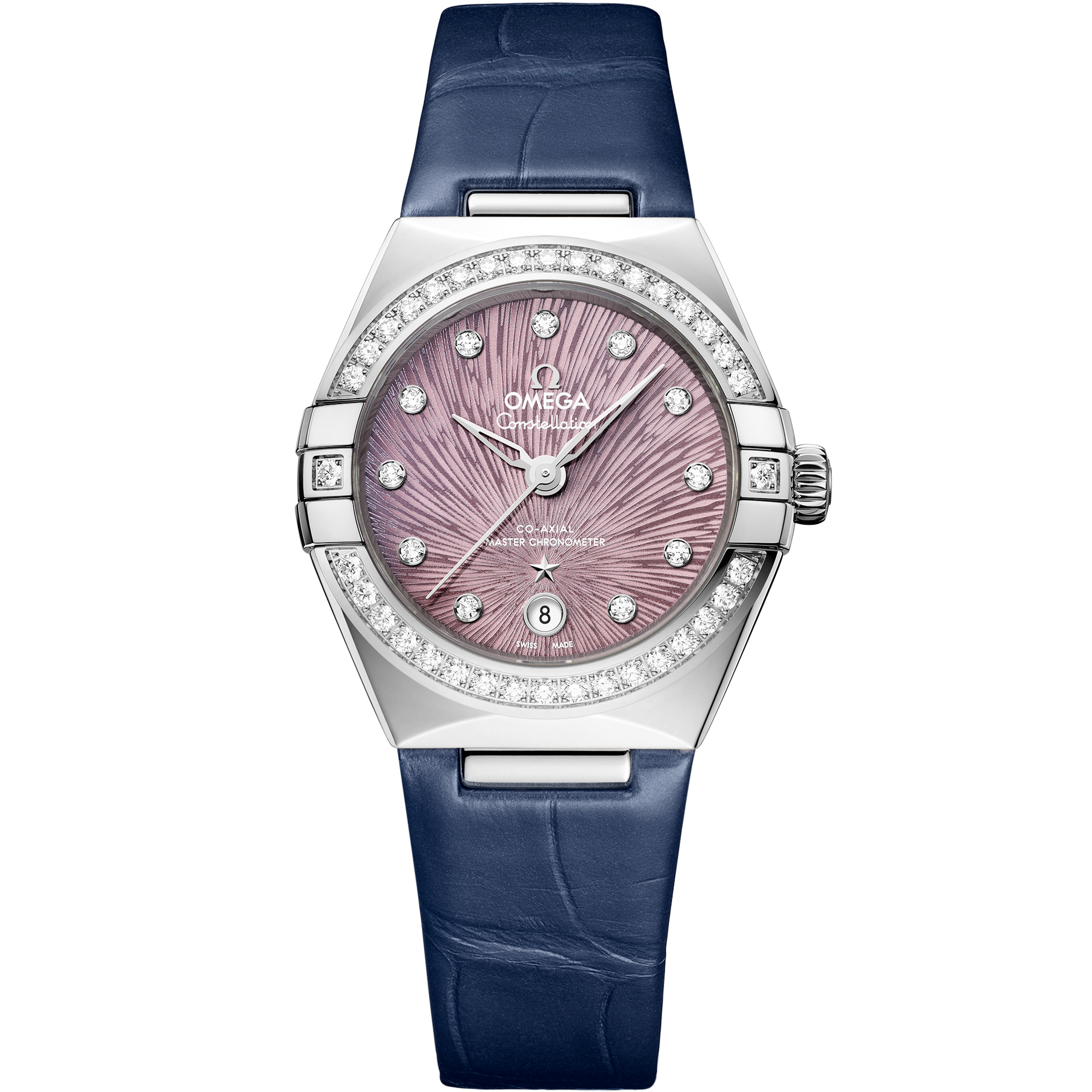 This 29 mm model is crafted in stainless steel and features a radiant diamond-paved bezel. The PVD lilac dial has been given a distinctive Supernova pattern through electrochemical etching, while other details include a date window at 6H, 18K white gold hands and star, and diamond hour markers in 18K white gold holders.