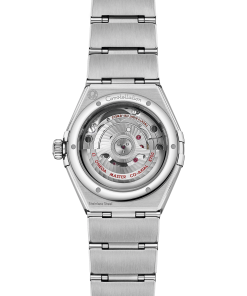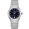 This 29 mm stainless steel model features a bezel with engraved Roman numerals, blue aventurine glass dial with diamond hour markers and a date window at the 6 o’clock position. The hands, OMEGA logo, Constellation star and diamond holders are in 18K white gold.