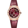This 34 mm model in 18K Sedna™ gold features a diamond-paved bezel, sun-brushed burgundy dial and a round date window at the 6 o’clock position. The incremental diamond hour markers are presented in 18K Sedna™ gold holders, while the Small Seconds subdial and Central Minute Track rings are also crafted in 18K Sedna™ gold and set with diamonds.