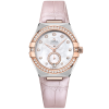 This 34 mm model in 18K Sedna™ gold and stainless steel features a bezel with engraved Roman Numerals, a light chestnut dial, and a round date window at the 6 o’clock position. The incremental diamond hour markers are presented in 18K Sedna™ gold holders, while the Small Seconds subdial and Central Minute Track are circled by rings.