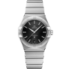 This 36 mm stainless steel and 18K Sedna™ gold model features a bezel engraved with Roman numerals, a silk-embossed creamy silvery dial and a date window at the 6 o’clock position. The hands, OMEGA logo, Constellation star and indexes are all in 18K Sedna™ gold.