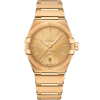 This 39 mm 18K Sedna™ gold model features a bezel engraved with Roman numerals, an opaline creamy silvery dial and a date window at the 6 o’clock position. The hands, OMEGA logo, Constellation star and indexes are all in 18K Sedna™ gold.