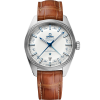 The sun-brushed grey “Pie Pan” dial is reminiscent of the first 1952 Constellation model. Each of its facets includes a month of the year in keeping with the Annual Calendar function. There is a blued Constellation star and OMEGA logo, and blued facetted hands and indexes which have been filled with Super-LumiNova.