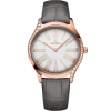 In this model, 18K Sedna™ gold has been used to create both the 34 mm case and the waved links of the white leather strap. This stunning material also features on the polished alpha-shaped hands, as well as 11 indexes, which are set with diamonds.