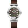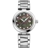 The attractive dial is made with white mother-of-pearl, to accentuate the feminine touch.