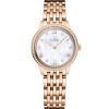 In this 27.5 mm 18K Sedna™ Gold model with its diamond-paved bezel, the dial is crafted from white mother-of-pearl. The display is distinguished by PVD Sedna™ Gold coloured hands, as well as alternating Roman numerals and diamond markers that are set in 18K Sedna™ Gold holders. The pure look of the timepiece is completed by a full caseback embossed with a God Chronos medallion.