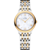 In this 27.5 mm stainless steel – 18K yellow gold model, the dial is crafted from white mother-of-pearl. The display is distinguished by yellow gold-plated hands, as well as alternating Roman numerals and diamond markers. The pure look of the timepiece is completed by a full caseback embossed with a God Chronos medallion.