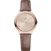 In this 27.5 mm stainless steel – 18K yellow gold model, the PVD Moonshine™ Gold dial features a sun-brushed finish. The display is distinguished by yellow gold-plated hands, as well as alternating Roman numerals and cabochon indexes. The pure look of the timepiece is completed by a full caseback embossed with a God Chronos medallion.
