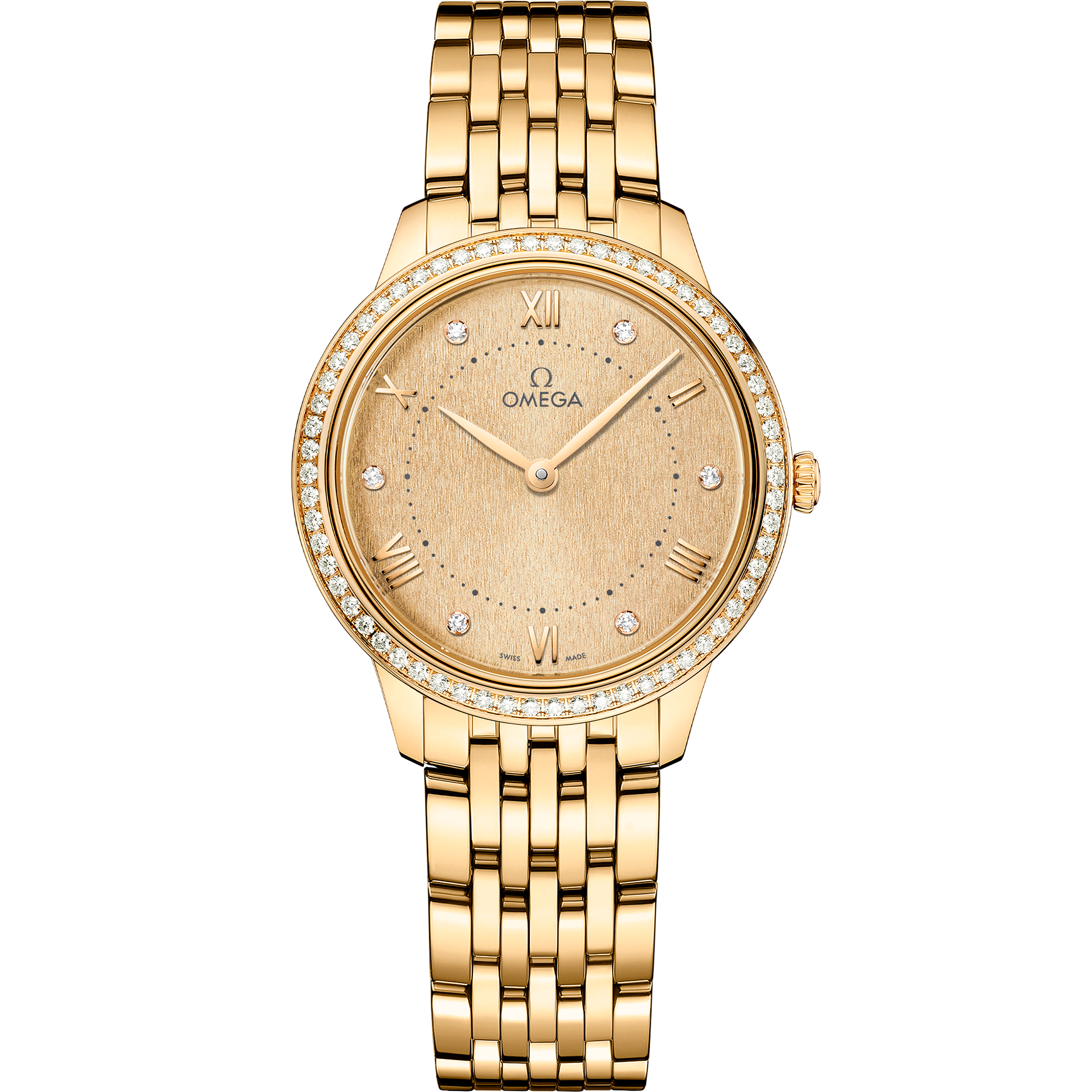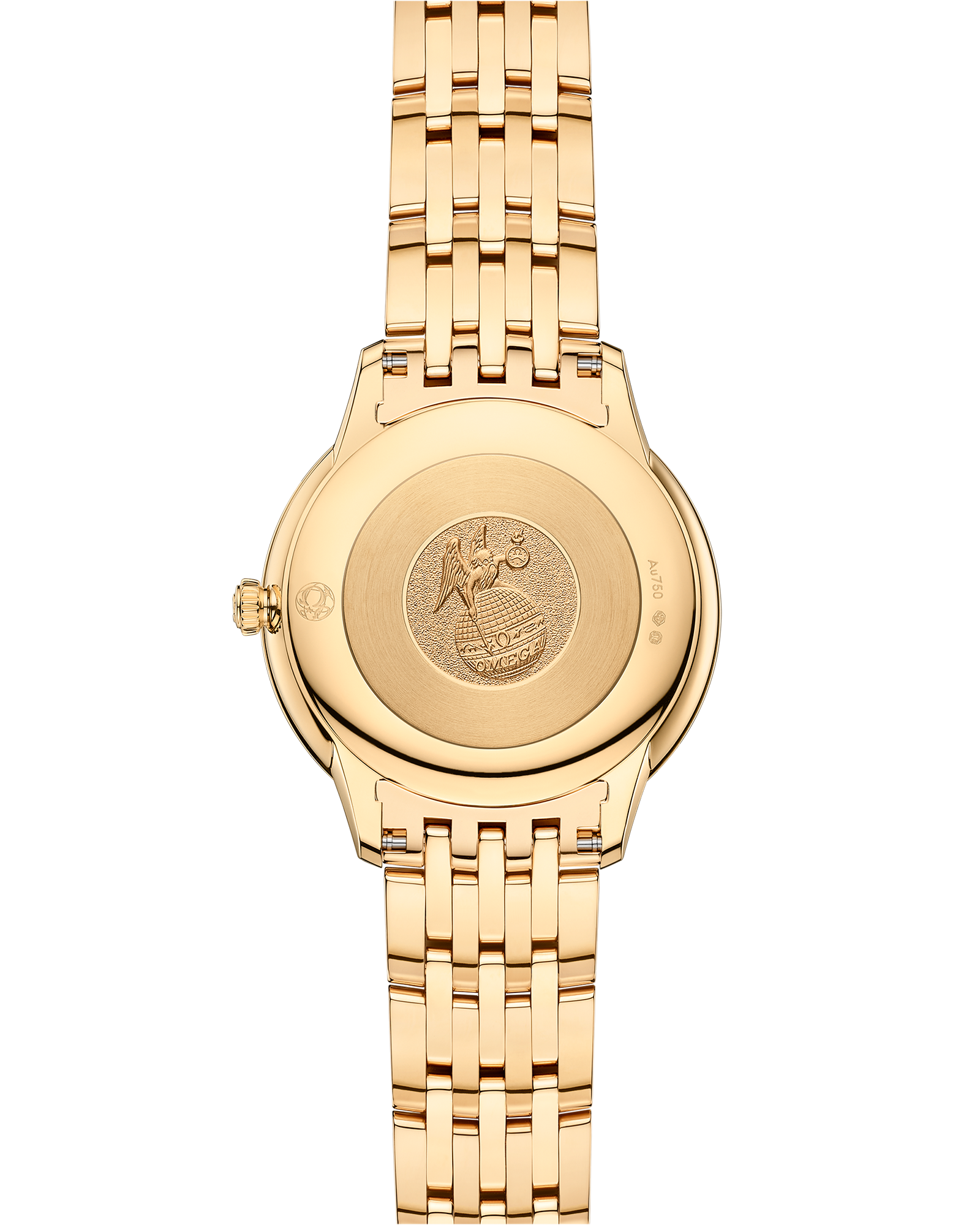 This watch is presented on an 18K yellow gold bracelet and is driven by the OMEGA Quartz Calibre 4061, with a battery life of at least 48 months.
