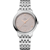 In this 34 mm stainless steel model, the PVD rose-grey sandy dial features a crystal finish. The display is distinguished by PVD Sedna™ Gold coloured hands, as well as alternating Roman numerals and diamond markers that are set in 18K Sedna™ Gold holders.