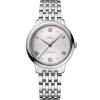 In this 34 mm stainless steel model, the dial is crafted from stunning Tahiti mother-of-pearl. The display is distinguished by rhodium-plated hands, as well as alternating Roman numerals and diamond markers.