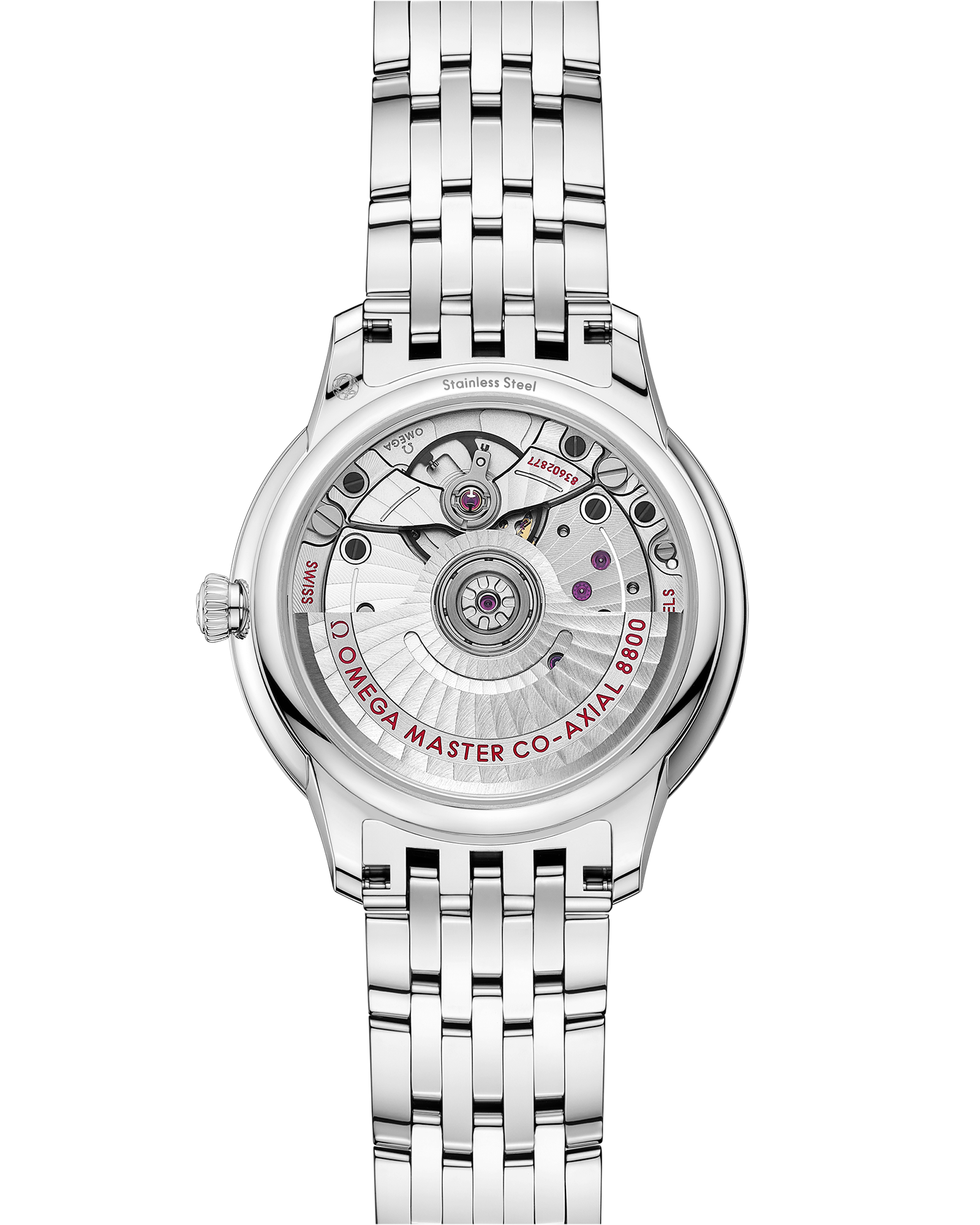 This Master Chronometer certified watch is presented on a stainless steel bracelet and is driven by the OMEGA Master Co-Axial Calibre 8800, which can be admired through the scratch-resistant sapphire crystal caseback.