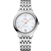 The pure look of the timepiece is completed by a date window at 6 o’clock, and a dotted minute track on the outer zone.