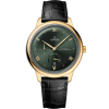 In this 41 mm 18K Sedna™ Gold model, the domed silvery dial features a crystal finish. The display is distinguished by PVD Sedna™ Gold coloured hands, as well as alternating Roman numerals and cabochon indexes.