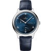 In this 41 mm stainless steel model, the domed PVD dim blue dial features a sun-brushed finish. The display is distinguished by rhodium-plated hands, as well as alternating Roman numerals and cabochon indexes.