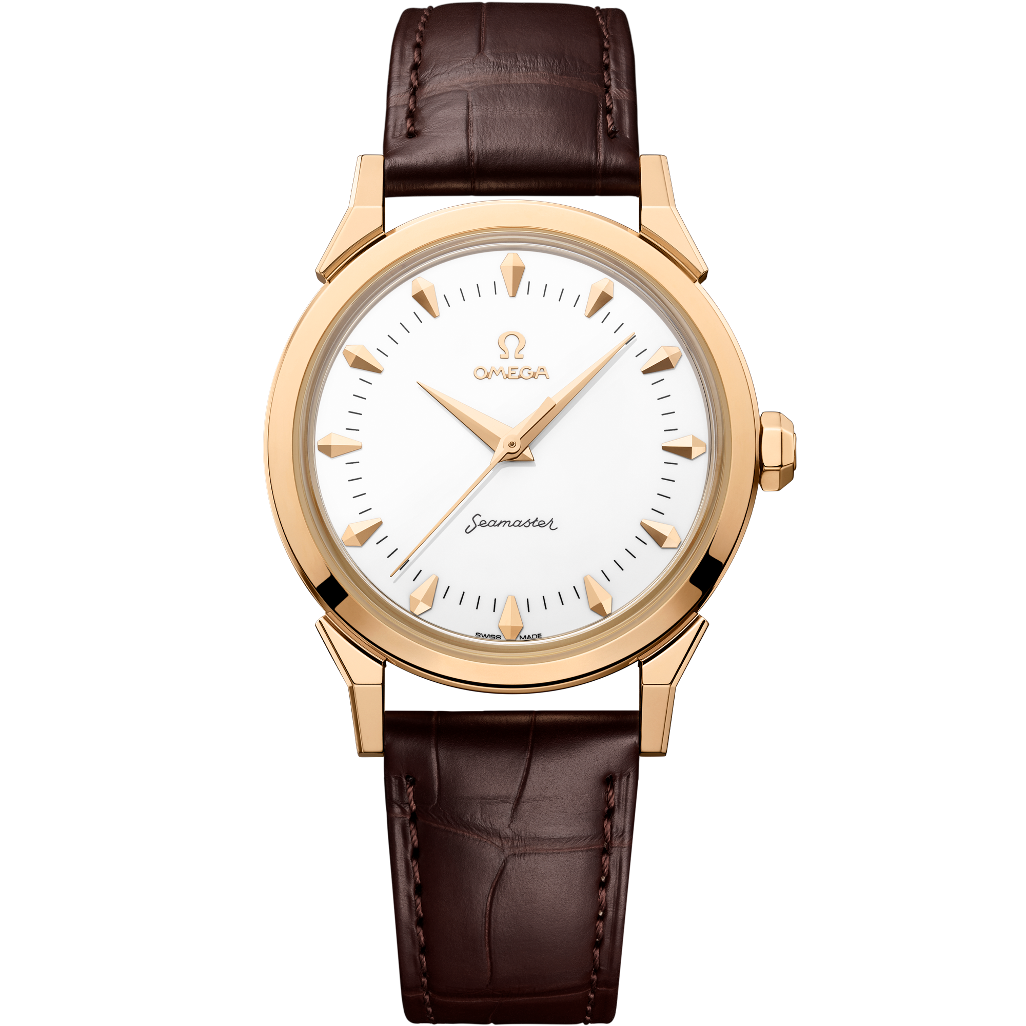 The Seamaster 37 mm Milano Cortina 2026 carries forward OMEGA’s distinguished Olympic legacy. The symmetrical case, crafted in 18K Moonshine™ Gold, combines classical proportions with modern refinement through its polished finish and hexagonal crown.