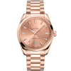 This 38 mm model, crafted in polished 18K Moonshine™ Gold, has a conical crown and wave-edged caseback with flat sapphire crystal. The sun-brushed and lacquered dial in Bay Green features a circular date window at 6 o’clock ringed in 18K Moonshine ™Gold. OMEGA has also used 18K Moonshine™ Gold for the facetted hands and distinctive hour-markers, which are shaped like sailboat hulls and filled with white Super-LumiNova.