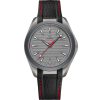 The watch is presented on an intergrated black rubber strap and is driven by the OMEGA Master Chronometer Calibre 8800, which can be seen through the sapphire-crystal on the wave-edged caseback.