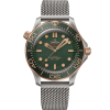 This 42 mm model is crafted in grade 2 titanium and OMEGA’s exclusive 9K Bronze Gold. It includes a green oxalic anodized aluminium bezel ring with a diving scale in vintage Super-LumiNova.