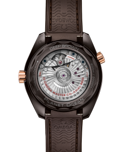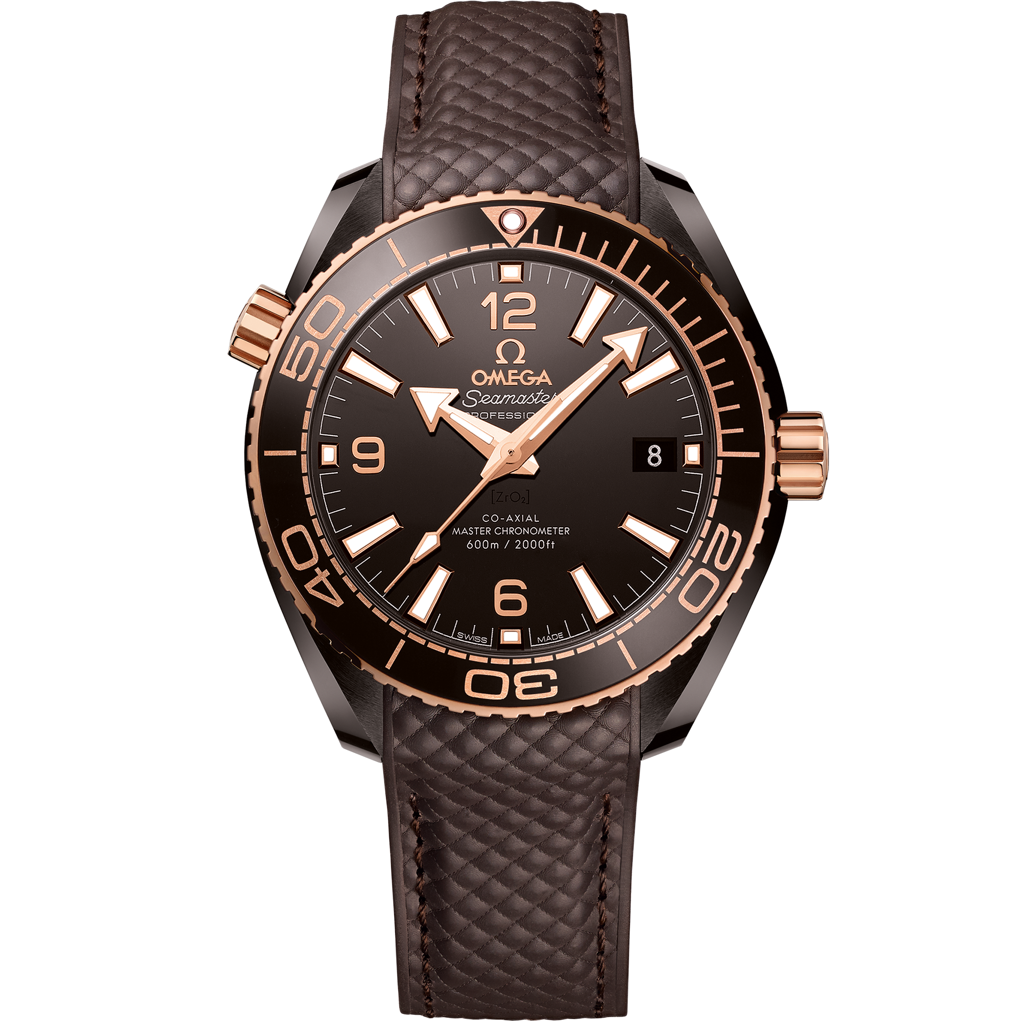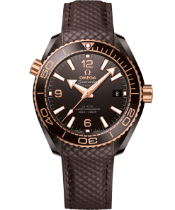 This 39.5 mm model features a sleek brown ceramic case and bezel with OMEGA Ceragold™ technology used to create the diving scale. The dial is also brown ceramic dial with 18K Sedna™ gold numerals, indexes and hands, as well as a date window at 3 o’clock.