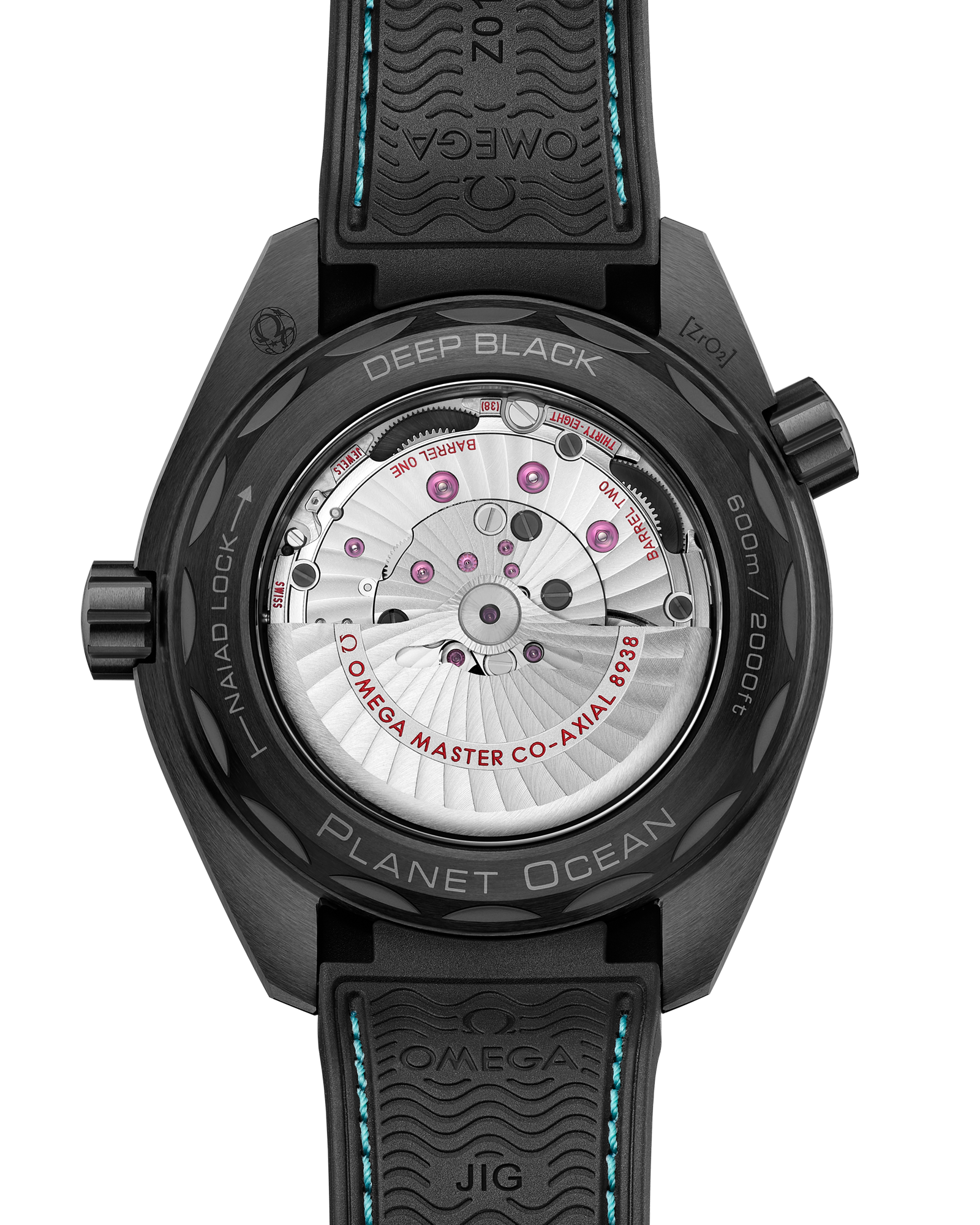 This Worldtimer is worn on an integrated strap in black structured rubber with turquoise stitching and a foldover clasp in ceramic and ceramised titanium. Powering the watch is OMEGA’s Co-Axial Master Chronometer Calibre 8938, which can be seen through the sapphire crystal caseback.