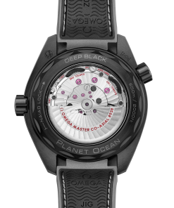 This Worldtimer is worn on an integrated strap in black structured rubber, with black-grey underside, grey stitching, and a foldover clasp in ceramic and ceramised titanium. Powering the watch is OMEGA’s Co-Axial Master Chronometer Calibre 8938, which can be seen through the sapphire crystal caseback.
