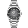 The symmetrical 38 mm case is brushed and polished, and is presented on a black leather strap. In keeping with the original Railmaster’s easy-to-read display, the dial of this model is grey with a black gradient, and features large numerals and hour markers in white Super-LumiNova.