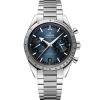 The watch is presented on a blue leather strap with an OMEGA logo in postive relief on the buckle, and is driven by the manual-winding OMEGA Co-Axial Master Chronometer Calibre 9906.