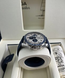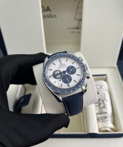 Along with black engravings on the caseback in tribute to Apollo 13 and OMEGA’s Silver Snoopy Award, there is also a blue ceramic [ZrO2] bezel ring with a white enamel tachymeter scale. The non-limited watch is driven by the OMEGA Co-Axial Master Chronometer Calibre 3861, and comes in a special presentation box.