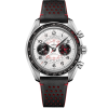 This 43 mm model is crafted in stainless steel with a silvery dial with blackened subdials. Along with a black anodized aluminium bezel ring with its tachymeter scale, the leaf-shaped hands and Arabic numerals are also blackened, with a unique “spiral” track pattern running beneath the numbers.