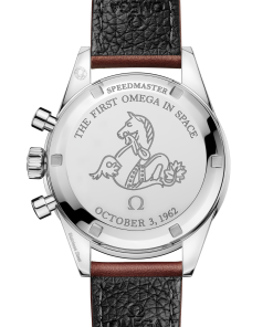 A vintage OMEGA logo is applied on the dial, as well as on the crown, while the caseback features the famous Seahorse medallion, and the engravings, “THE FIRST OMEGA IN SPACE” and “OCTOBER 3, 1962”.