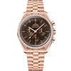 Presented on a five-arched-links-per-row bracelet, this 42 mm Moonwatch in 18K Canopus Gold™ features sapphire crystal glass on the front as well as on the caseback. Inspired by the 4th generation Speedmaster style worn on the moon, it also includes a sun-brushed silvery dial, and an asymmetrical case with diamond-paved bezel.
