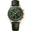 Inspired by the 4th generation Speedmaster, this 42 mm Moonwatch with case and bracelet in 18K Moonshine™ Gold, has a sun-brushed green PVD “step” dial and “Moonwatch” style hands. The green ceramic bezel ring, with OMEGA Ceragold™ tachymeter scale, features the famous dot over 90.