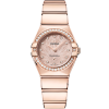 The sun-brushed silvery white “step” dial is presented with applied OMEGA logo and indexes, 18K Moonshine™ Gold hands, and galvanic 18K Moonshine™ Gold subdials including a small seconds recorder, 30-minute recorder, and 12-hour recorder.