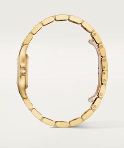 Designed in the 1980s, the Panthère de Cartier watch takes its name from the bracelet of the same name. Its ultra-flexible structure echoes the movements of the Maison’s emblematic animal. Both a watch and a piece of jewelry, it is a veritable fashion icon for women with bold style.